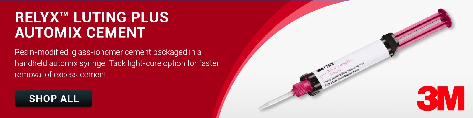 Henry Schein offers a full line of dental cements for a wide range of clinical applications including temporary restorations of teeth, protective cavity linings, filling materials, pulpal protection cementing fixed prosthodontic appliances and more! Shop Henry Schein Temporary Cement Handheld Automix Syringes, GC America FUJICEM® Evolve, 3M RelyX™ Luting Plus Automix Cement and the full line of 3M™ dental cements and resin cements. Rely on Henry Schein’s knowledgeable network of trusted advisors for all your dental cements and liners requirements.