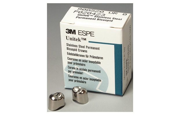 Unitek™ preformed temporary stainless steel replacement crowns offer a shallow occlusal anatomy, thick occlusal surface and parallel walls that allow for operator fit control. These bicuspid temporary crowns are pre-trimmed to optimal length and contour to save you placement time. Available in a wide selection of shapes and sizes, Unitek™ preformed temporary crowns are made in the USA with high quality stainless steel.