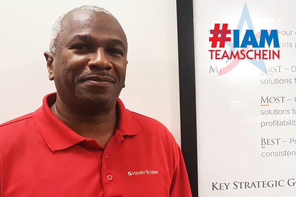 "People ask how I'm so calm. At work, losing your cool doesn't really get anything done. And in general, when there's an issue for one reason or another, I know getting upset doesn't solve anything. In 2010, I was diagnosed with a brain tumor. It was unexpected, and my doctor had a terrible bedside manner, so I was very upset and mentioned it to my manager. I told her what I was going through and how I couldn't get an appointment with a specialist. My manager had a conversation with friends and colleagues, which led to one of my fellow TSMs getting me an appointment for the following morning. It turned out to be benign, but for the 48 hours that I thought I had a life-threatening brain tumor, I was obviously very stressed. You look at this organization and when you need someone, somebody steps up. It comes naturally for all TSMs, simply because of the culture. Believe it or not, you hear stories like mine from so many people throughout the organization. Whether it's folks with Henry Schein Cares or other groups, everyone digs in and does their part. It just goes to show that this was the right place for me all along." #IAMTEAMSCHEIN