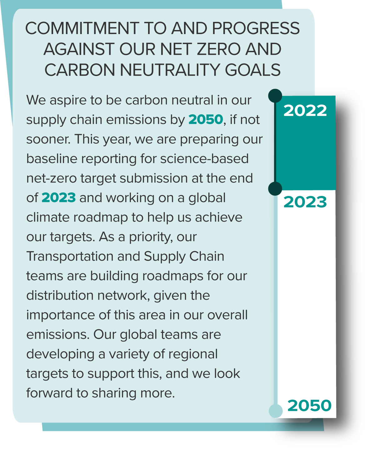 Guided by our science-based targets, Net Zero 2050 is a company-wide climate roadmap to significantly reduce our greenhouse gas emissions by 2030, and approach net zero by 2050.