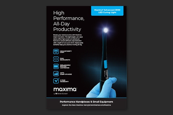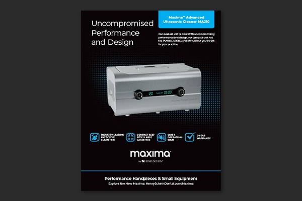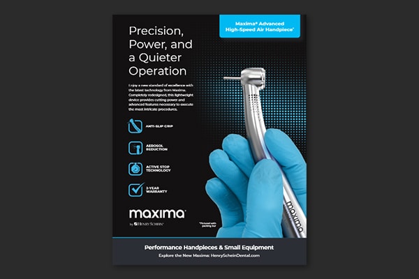 Introducing the Maxima line of handpieces and small equipment. Built on performance, reliability, and engineering expertise. Tailored to your specific clinical needs, our products drive peak efficiency in your practice. Prepare to consistently deliver top-tier performance, case after case.