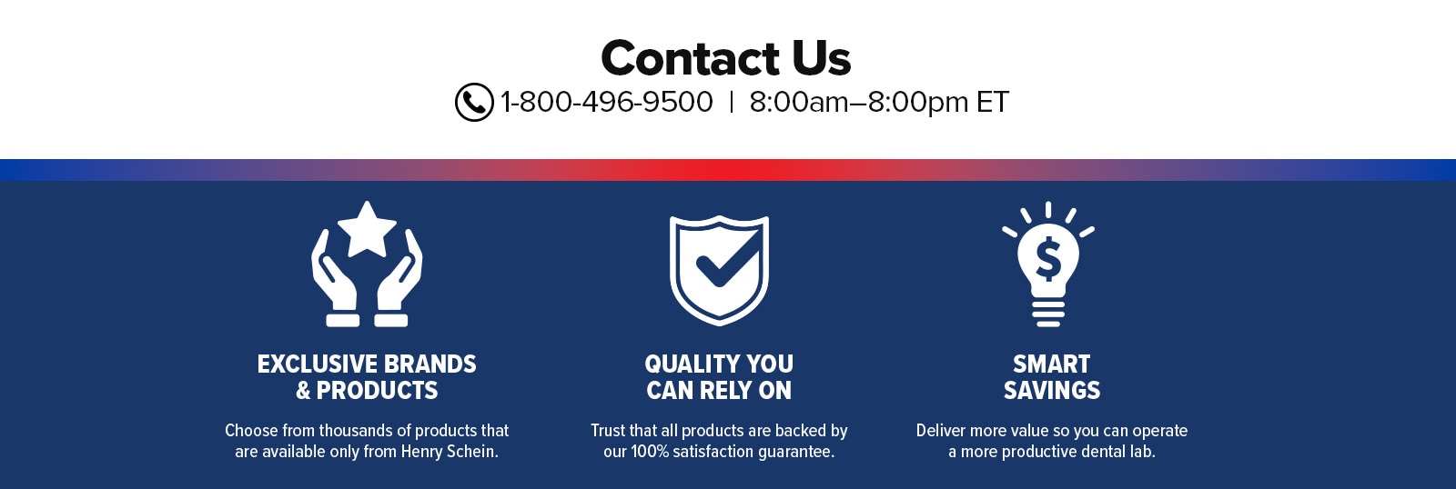 The products you use in your dental lab have to be of the highest quality. That's why we're proud to offer Henry Schein Brand products that improve both your bottom line and your clinicians and their patients' experience. We stand by our products with the outstanding quality that customers have known for more than 85 years. Rely On Us for all your needs from the Henry Schein Brand selection of products and browse our supplies today!
