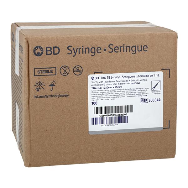 UltiCare Tuberculin Syringe/Needle 25gx1" 1mL Fixed Prm Atch Ndl Sfty LDS 100/Bx