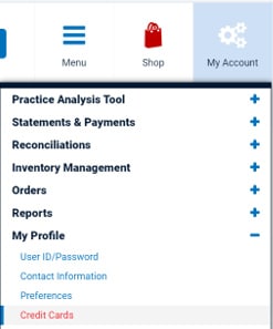 Credit Cards can be added to your profile by going to My Account > My Profile > Credit Cards > Add Credit Card.