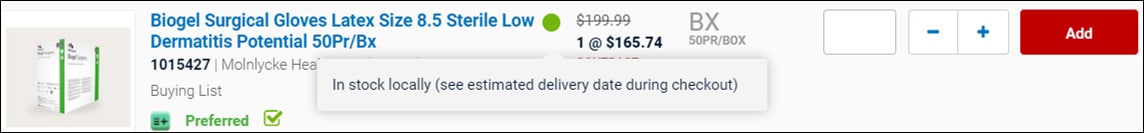 Each Item Status indicator is color coded to represent estimated item availability. The following represents the possible Item Statuses: