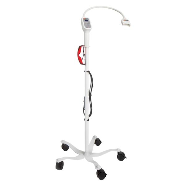 Fast and easy for patients and staff: requires only a 12-minute prep time, utilizing a comfortable, easy-to-use, patented tray. Preloaded silicone treatment tray, with a 25% carbamide-peroxide solution and menthol, keeps sensitivity very low and allows the jaw to remain relaxed through the 20-minute treatment. LED accelerating light helps to activate the gels whitening ingredients at a faster rate, resulting in a 25-shade change in less time. Includes a take-home, 22% carbamide-peroxide whitening pen, which provides 60 nightly applications for home-care maintenance.