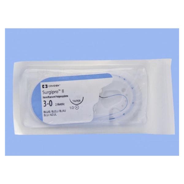 Surgipro II Suture Polypropylene Monofilament 3-0 36" Non-Absorbable V-20 Taper Point 1/2 Circle Needle 26mm Uncoated Blue 36/Box