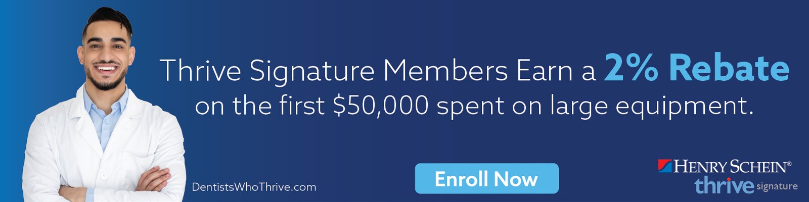 When you enroll in the Henry Schein Thrive Signature membership program, you can earn rebates on equipment and merchandise, plus enjoy exclusive savings on business management services, complimentary shipping and more. Our dedicated concierge team is here to support you and bring greater value to you and your practice.