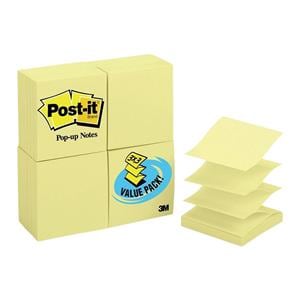 Pop-Up Notes 3 in x 3 in Canary Yellow 100 Sheets/Pad 24/Pack 24/Pk