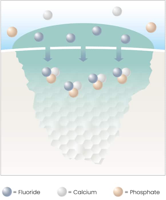 The proprietary formulation diffuses throughout the lesion to provide the remineralizing agent, fluoride, together with calcium and phosphate from saliva where it is needed most. Over time, the watch area is remineralized, helping in the prevention of caries progression and enabling preservation of the natural tooth. Without injections, pain or drilling.