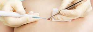 Desecación/Fulguración: la electrocirugía, que incluye la electrodesecación, la fulguración, la electrocoagulación y la electrosección, es un tipo de procedimiento usado para realizar escisiones de lesiones, tanto benignas como malignas y para controlar el sangrado.