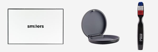 Every Smilers case comes with a free welcome kit with a tray case, aligner cleaning brush, and aligner soap for your patient's convenience
