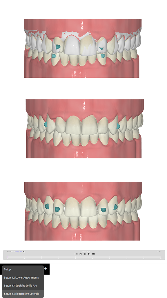 Timeline viewer allows for a unique visualization of movement for each aligner and each tooth in an intuitive display.