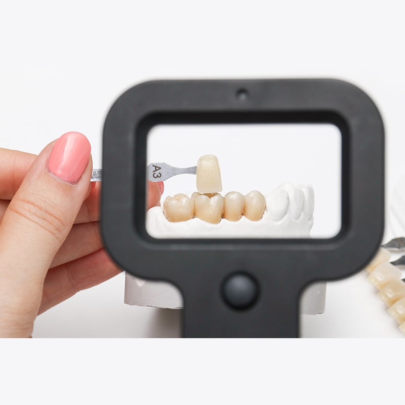 Tome el control total del tono mediante el disco blanco Zirlux® 16+. Los 16 tonos Vita®* pueden lograrse mediante el emparejamiento con los líquidos de teñido Zirlux® antes de la sinterización. Los técnicos ahora pueden gestionar todo el proceso de pigmentación de principio a fin.