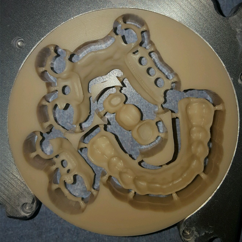 Con un fresador en seco de 5 ejes, los laboratorios dentales ahora pueden eliminar los trabajos en cera, las inversiones, los moldes y los acabados de estructuras de CrCo. Zirlux Acetal sale del fresador casi pulido, lo que hace del acabado y el pulido final fácil de completar.